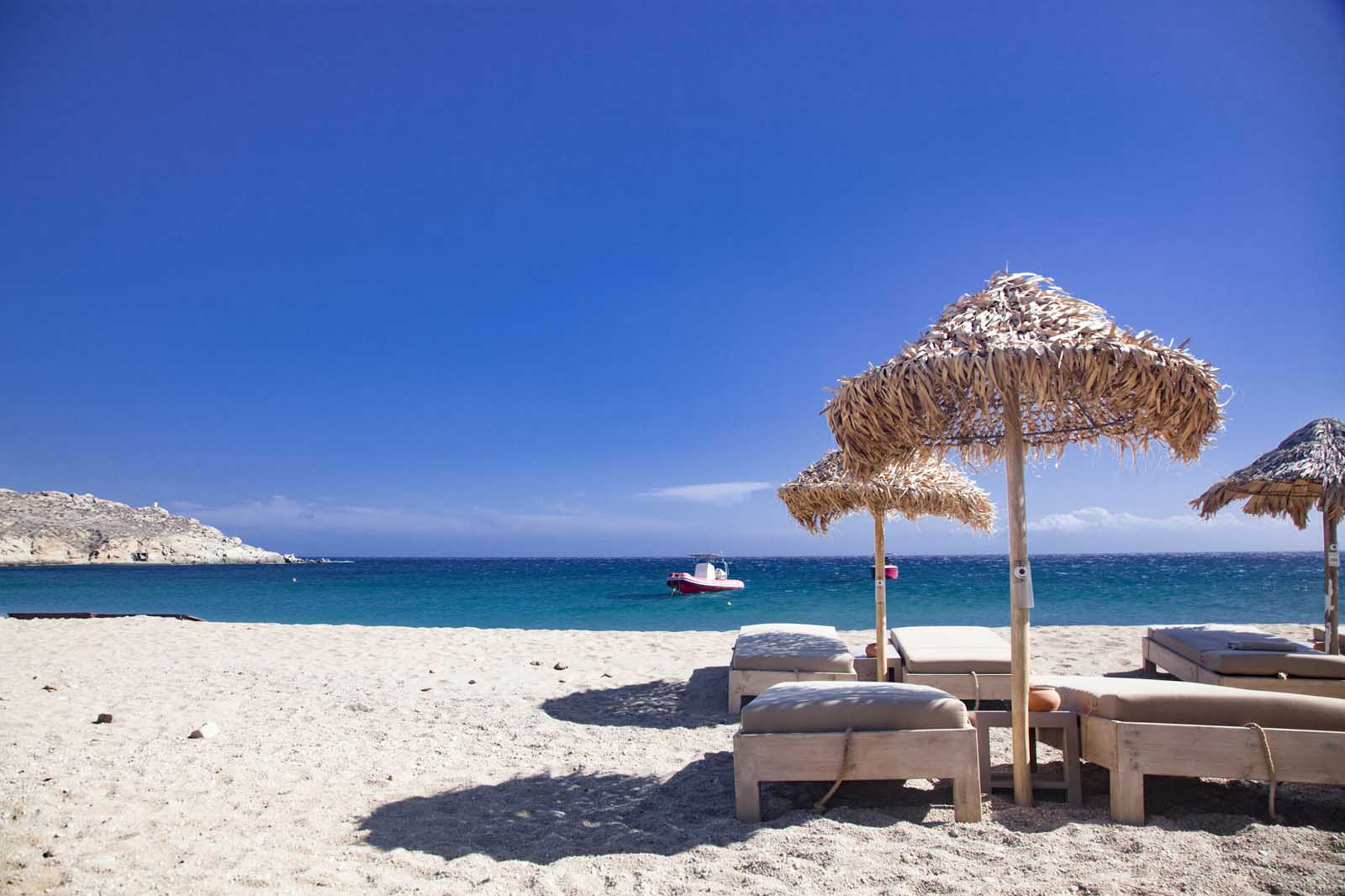 Kilka mil od miasta Mykonos, Psarou Beach to kolejne popularne miejsce na dzień na piasku. Psarou, wyłożony ekskluzywnymi barami plażowymi, serią bogatych kurortów i jednych z najlepszych potraw na wyspie, to miejsce, w którym można doświadczyć kolan luksusu.